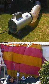 The process starts like a standard fumigation treatment - the house or area to be treated is completely sealed by nylon tarps (However unlike fumigation the roof is not tented and does not necessarily need to be walked on or damaged as a result). What's pumped in to eradicate the wood-eating pests isn't a pesticide gas but plain old hot air.
